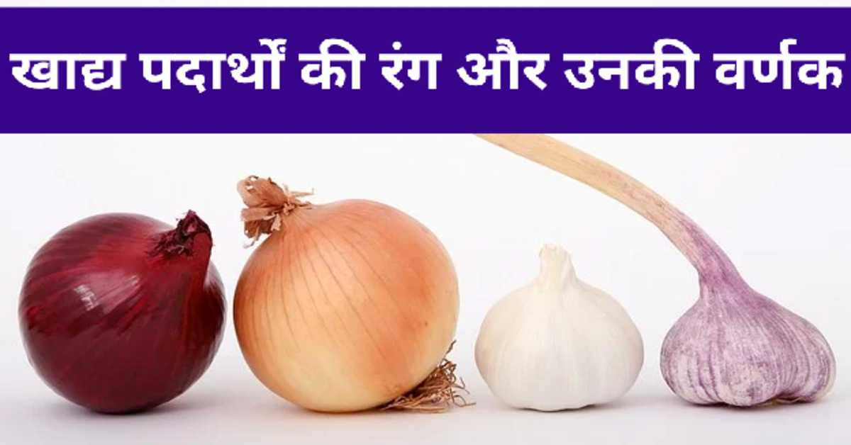 10. प्याज (onion) मे लाल (red) रंग - एन्थोसाइनिन (anthocyanins) वर्णक के कारण होता है।