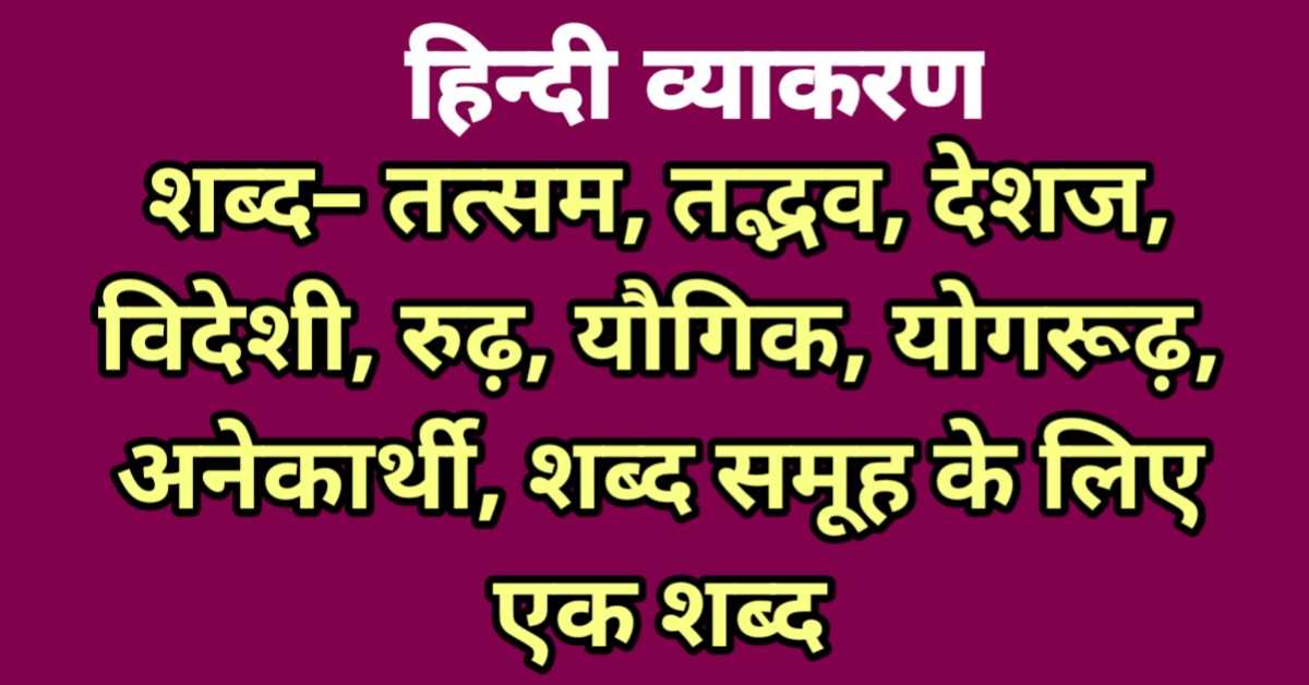 शब्द– तत्सम, तद्भव, देशज, विदेशी | रुढ़, यौगिक और योगरूढ़ | अनेकार्थी, शब्द समूह के लिए एक शब्द