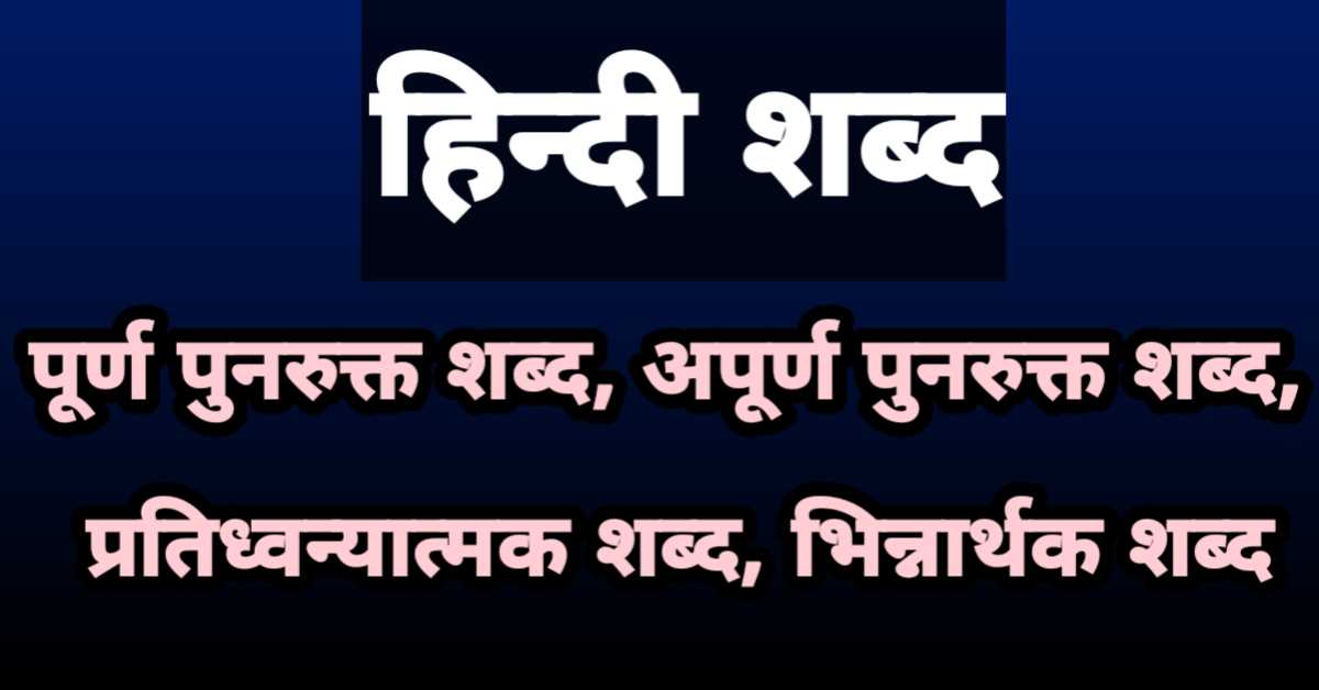 हिन्दी शब्द- पूर्ण पुनरुक्त शब्द, अपूर्ण पुनरुक्त शब्द, प्रतिध्वन्यात्मक शब्द, भिन्नार्थक शब्द