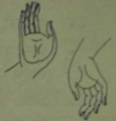 The meaning of this mudra is 'Rotating the wheel of Dharma or rule' ie 'Dharma in the circle of motion bring'. In this mudra, the right hand is touched with the chest by keeping the palm open outside. The tip of the index finger and thumb of the right hand touch each other to form a mysterious circle. The left hand is turned inward. The index finger and thumb of this hand touch the circle of the right hand. This mudra was used by the Buddha while giving his first sermon after enlightenment at the Deer Garden at Sarnath.