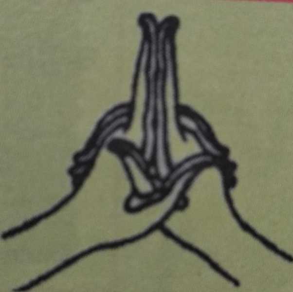 This mudra is a symbol of warding off evil. In this mudra, the hands are kept outstretched with open palms, either horizontally or vertically. The middle two fingers are pressed by the thumb and the index and little fingers are kept straight up. This pose is a signal to drive out negativity. The energy generated by this mudra helps to avoid diseases and negative thoughts.