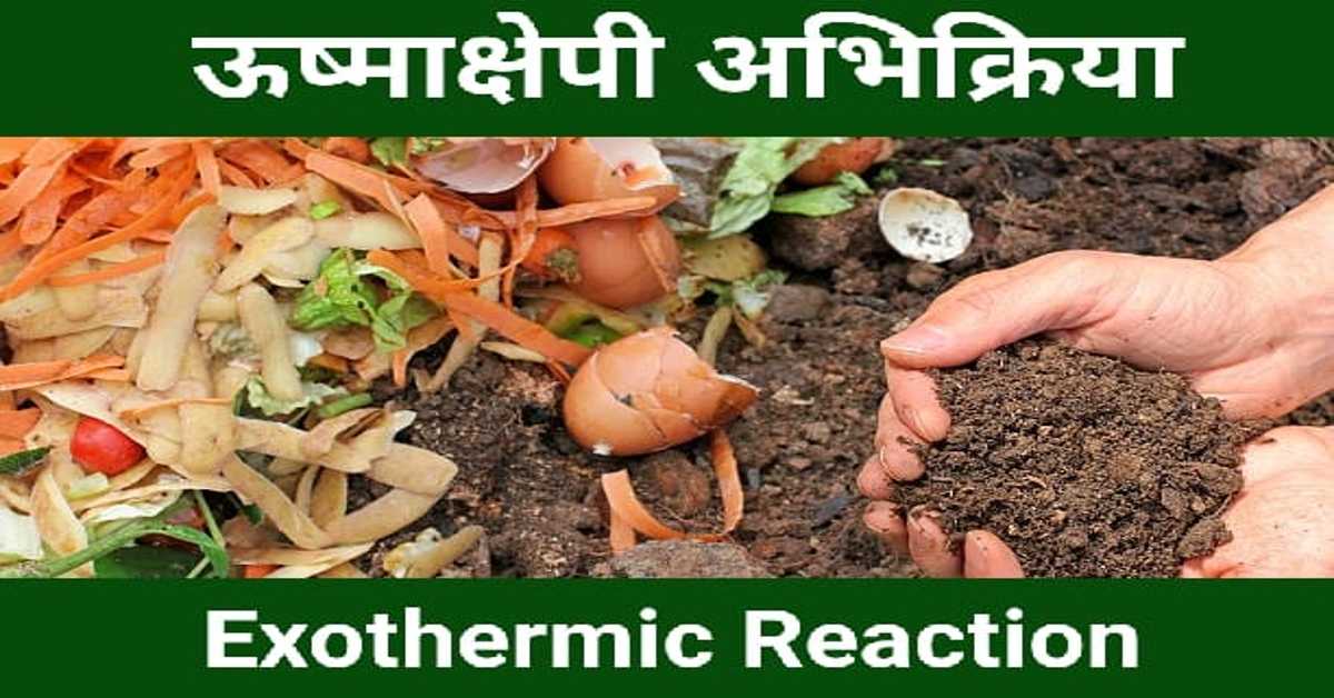 4. वनस्पति द्रव्य अर्थात् शाक-सब्जियों का विघटित होकर कंपोस्ट बन जाना भी ऊष्माक्षेपी अभिक्रिया है।