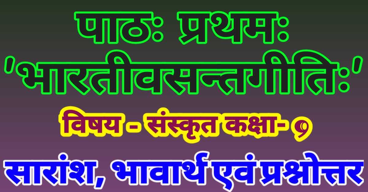 पाठः प्रथमः 'भारतीवसन्तगीतिः' (विषय - संस्कृत कक्षा- 9) सारांश, भावार्थ एवं प्रश्नोत्तर || Sanskrit 9th Pratham Path 'Bharatsantgiti'