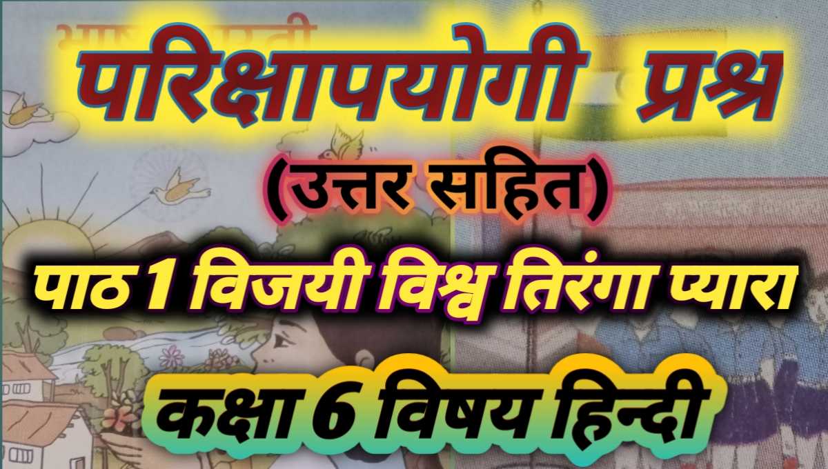 परीक्षापयोगी प्रश्न (उत्तर) सहित कक्षा 6 पाठ 1 विजय विश्व तिरंगा प्यारा (Vijay vishaw tiranga pyara) विषय हिन्दी (Hindi)