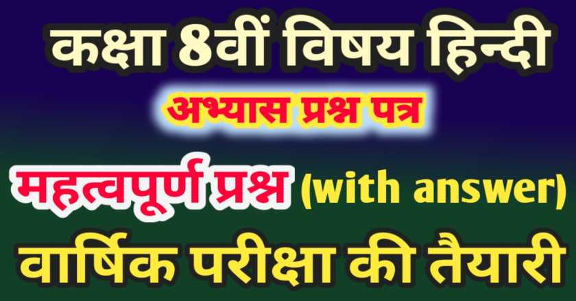 कक्षा 8 वार्षिक परीक्षा की तैयारी विषय हिन्दी के अभ्यास मॉडल प्रश्नपत्र (हल सहित) एवं महत्वपूर्ण प्रश्न और उत्तर।